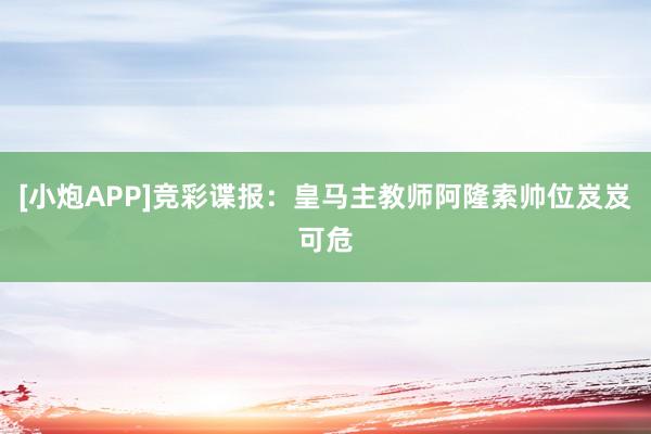 [小炮APP]竞彩谍报:皇马主教师阿隆索帅位岌岌可危